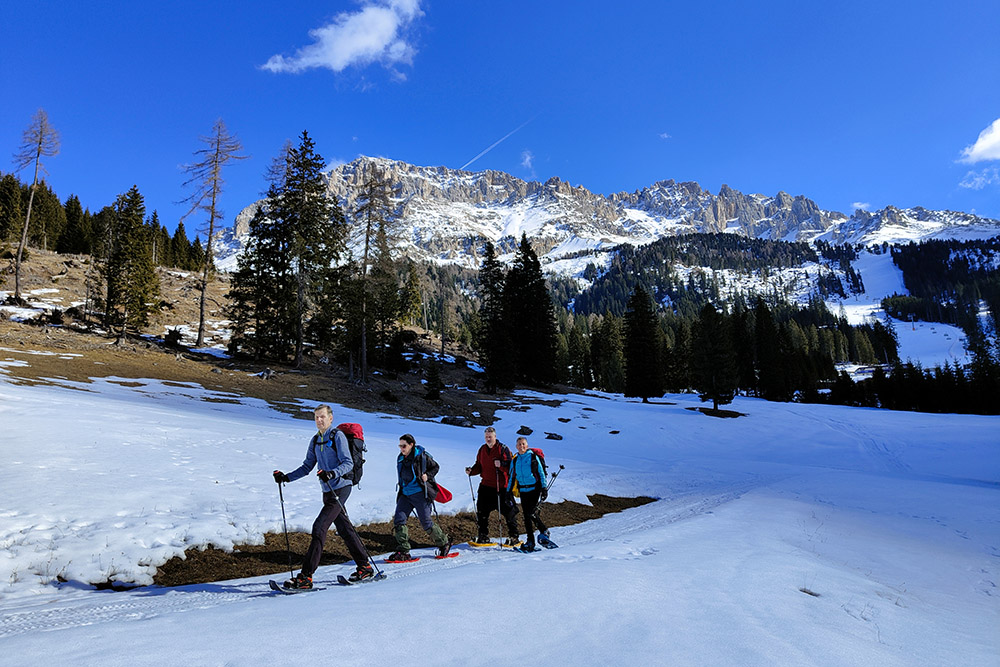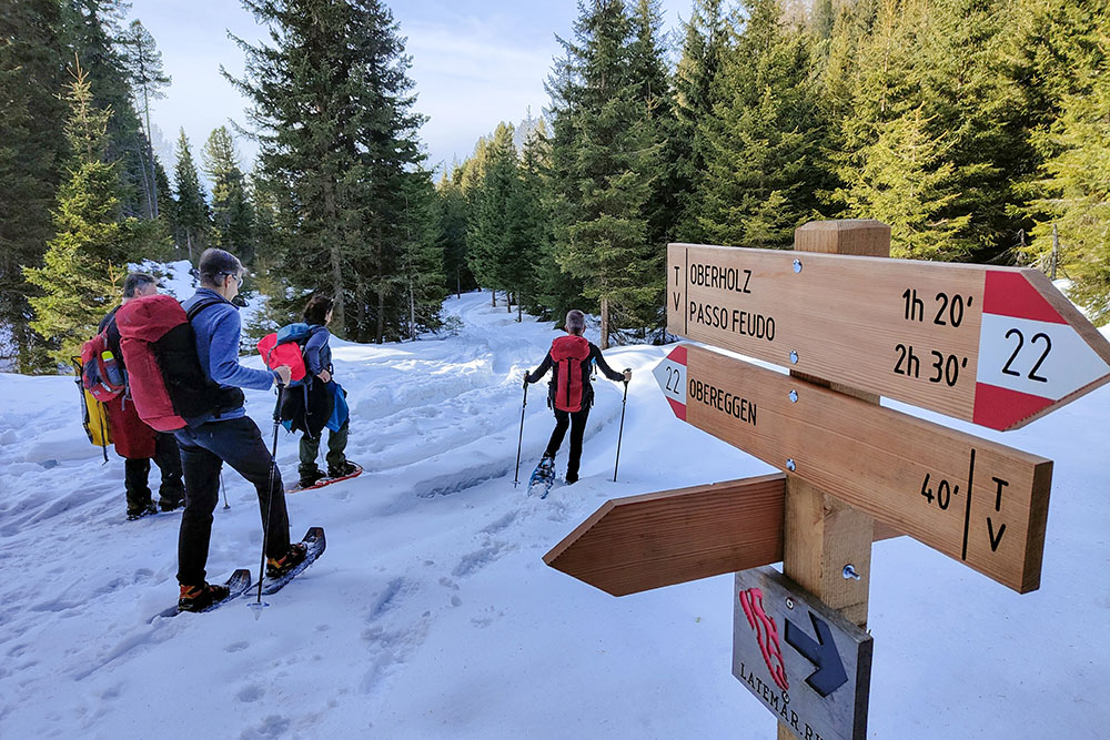L'escursione invernale con le ciaspole nella zona turistica di Obereggen, situata nella splendida Val d'Ega, è un'esperienza incantevole che offre un connubio perfetto tra la bellezza dei paesaggi montani e l'emozione dell'attività fisica nella neve.