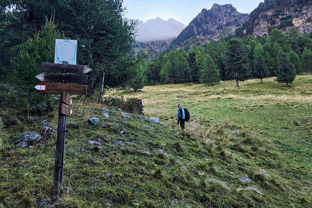 Il Glieshof, punto di partenza delle escursioni, rappresenta un pezzo di storia dell'ospitalità alpina. Il Glieshof è situato nell'Alta Val di Mazia a 7 km dal paese di Mazia. È un albergo di montagna a 1824m. Questa struttura ha sempre costituito un ponte tra la civiltà di fondovalle e l'alta montagna, offrendo ai pionieri dell'alpinismo ottocentesco e novecentesco un rifugio sicuro prima delle grandi ascensioni.