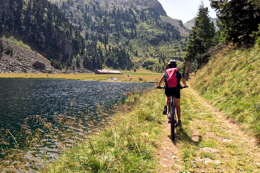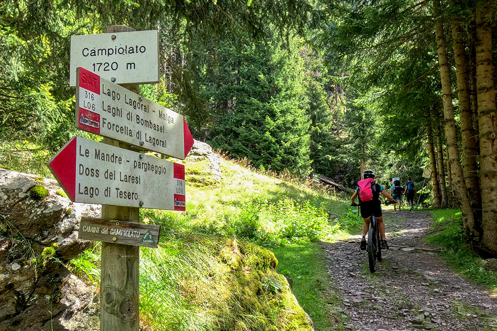 Dal parcheggio presso il Centro Fondo di Tesero (900 m) si segue la pista ciclabile “Val di Fiemme e Fassa”, direzione Predazzo. Arrivati a Ziano di Fiemme (951 m) si abbandona la ciclabile e si sale per la Val Cavelonte. Al Ponte delle Mandre (1296 m) si devia a destra sulla Strada forestale Valaree Alte e si va alla Malga Fraton (1756 m) e alla Località Campiolato (1720 m). Ora si sale per una mulattiera fino al Lago Lagorai e Malga Lagorai (1876 m). Si ritorna per la stessa mulattiera alla Località Campiolato e dopo si scende seguendo i segnavia 316 e L06 prima al Parcheggio Le Mandre (1381 m) e poi in Val di Fiemme in Località Lago. Infine si ritorna al punto di partenza percorrendo la pista ciclabile “Val di Fiemme e Fassa”.