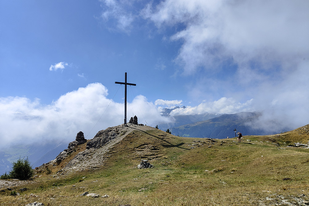 Questa escursione, piuttosto semplice, permette di raggiungere una delle vette più panoramiche della zona. I primi 2,3 km si percorrono su una strada inizialmente asfaltata, che diventa poi sterrata, seguiti da una salita su un sentiero ben tracciato. Prima di proseguire verso la cima del Piz Lun, è consigliata una deviazione sulla destra per raggiungere la Tartscherkreuz, un punto panoramico che merita una sosta.