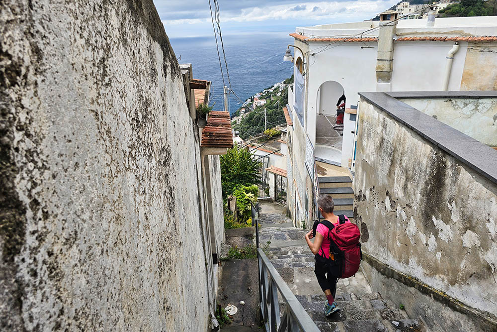 Lasciare Pogerola, il balcone fiorito che domina i tetti e le cupole di Amalfi, significa immergersi in un paesaggio in continua trasformazione. L'atmosfera intima del borgo lascia gradualmente spazio a un mondo fatto di scale naturali, antichi sentieri lastricati e quiete profonda. Il fragore delle onde e il rumore del traffico si dissolvono, sostituiti dal ronzio delle api, dal profumo intenso dei limoni sfusati e dal fruscio del vento tra i pini marittimi.
