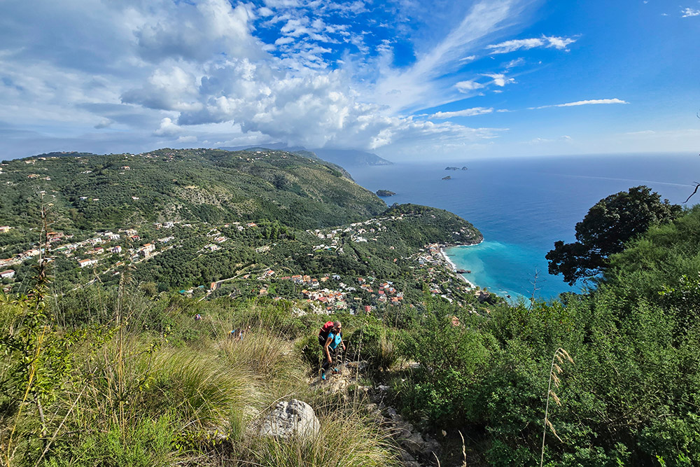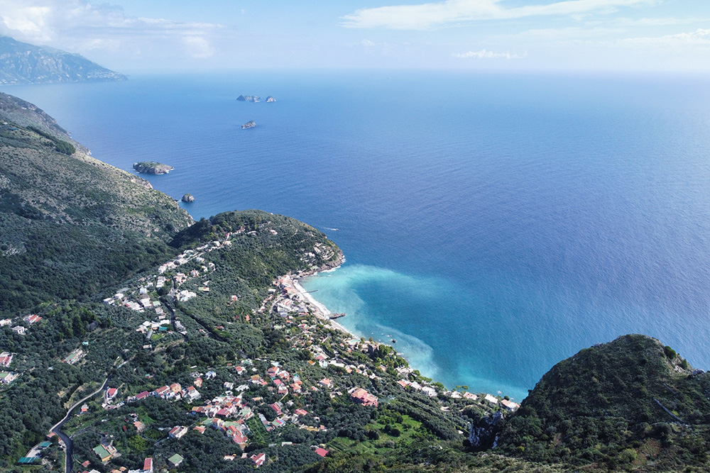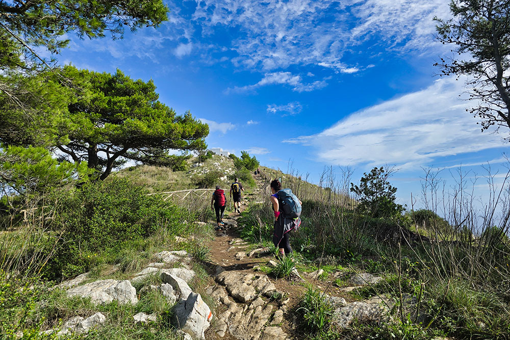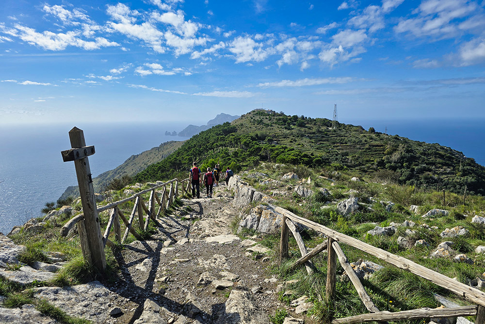 Il percorso ad anello è lungo 7,8 km con un tempo di percorrenza di circa 4 ore, e rappresenta la sesta tappa del trekking della Costiera amalfitana. L'escursione offre vedute panoramiche a 360 gradi che spaziano dal golfo di Napoli a quello di Salerno, con il Vesuvio, le isole di Capri, Ischia e Procida. I punti più spettacolari si raggiungono dalla cima del Monte San Costanzo e percorrendo la cresta che degrada verso Punta Campanella, da dove la vista abbraccia la Baia di Ieranto e le acque cristalline del mar Tirreno.