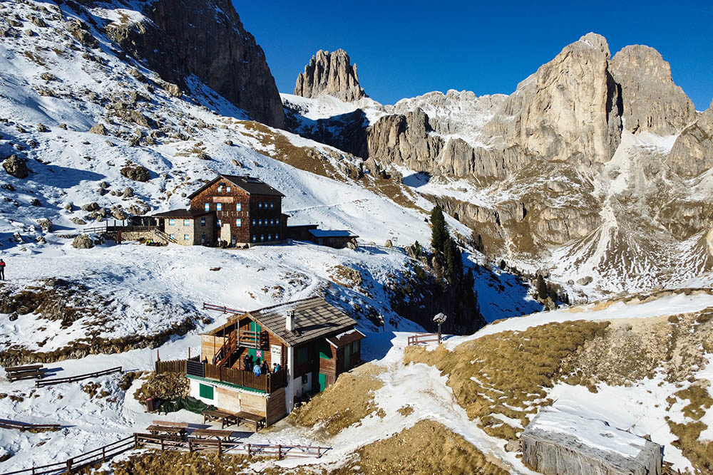 Il Rifugio Roda di Vael sorge a 2283 metri di quota sulla Sella del Ciampaz, ai piedi del Croz di Santa Giuliana, nel territorio comunale di Vigo di Fassa. Il Rifugio Paolina si trova invece a 2125 metri, raggiungibile con l'omonima seggiovia che parte dalla località Carezza.