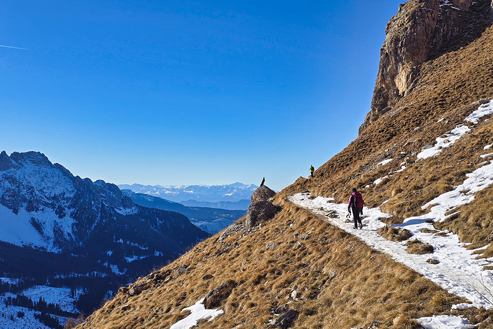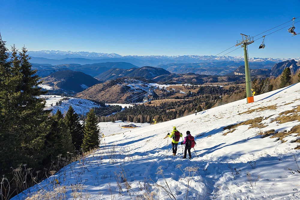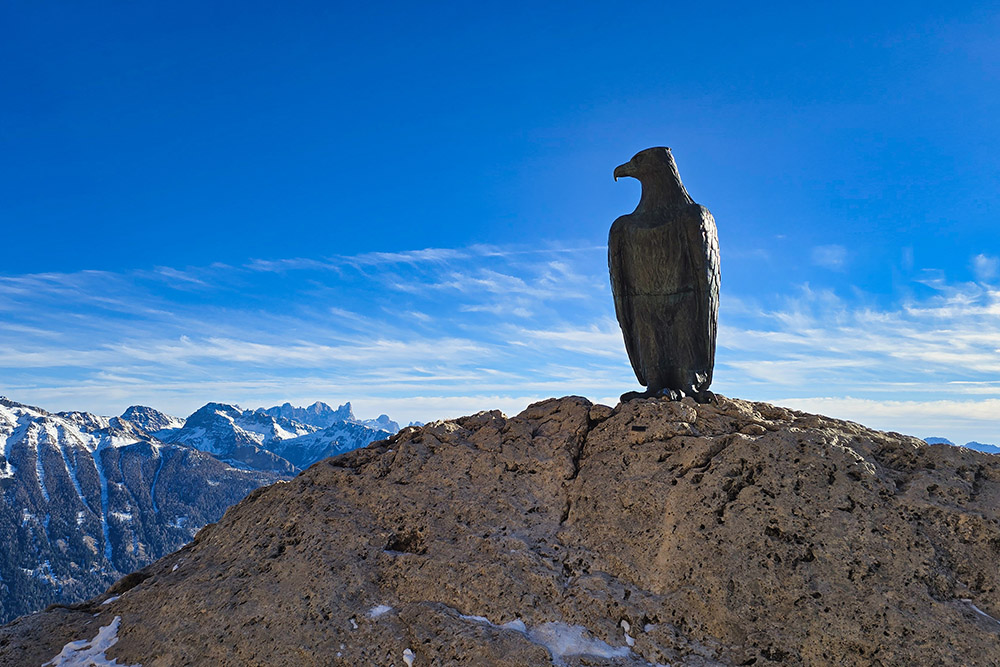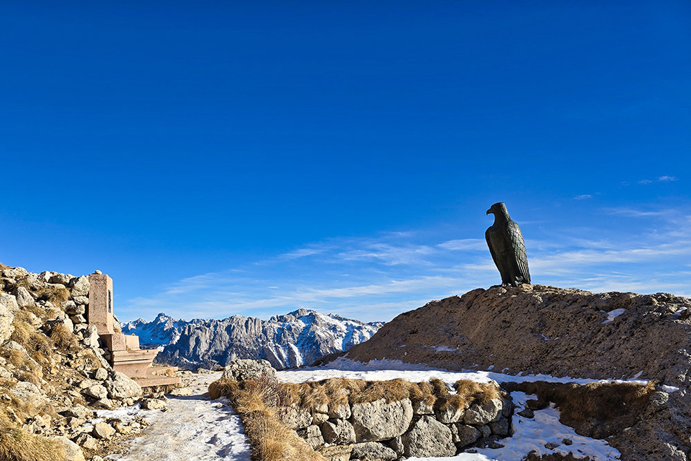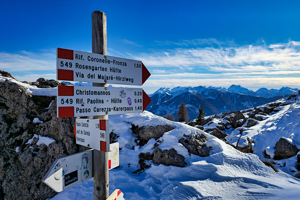 Dal rifugio, un bellissimo sentiero panoramico in quota (segnavia 549) conduce in circa 20 minuti al monumento dedicato a Theodor Christomannos: un'imponente aquila in bronzo alta 2,50 metri che domina il paesaggio. La discesa verso il Rifugio Paolina è breve e comoda. Il Rifugio Paolina, raggiungibile anche con la seggiovia da Carezza operativa tutto l'anno, è particolarmente frequentato nel periodo invernale grazie alla sua posizione all'interno del comprensorio sciistico Carezza Dolomites. Nel ritorno si deve stare attenti a non invadere le piste da sci.