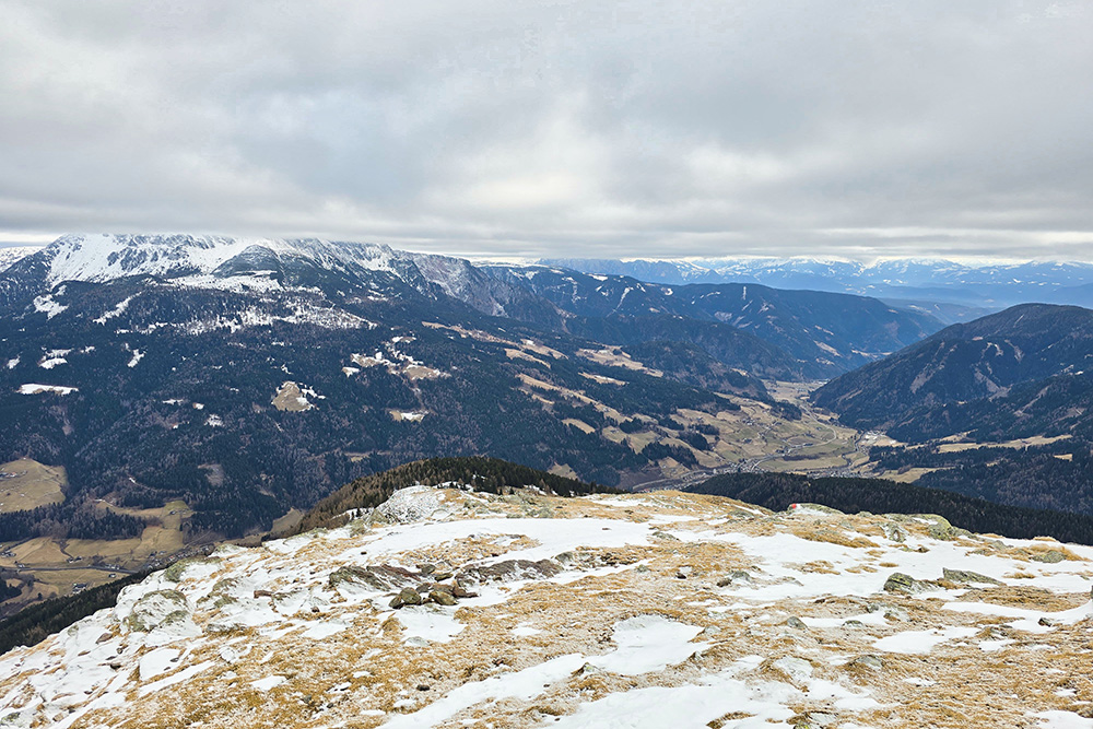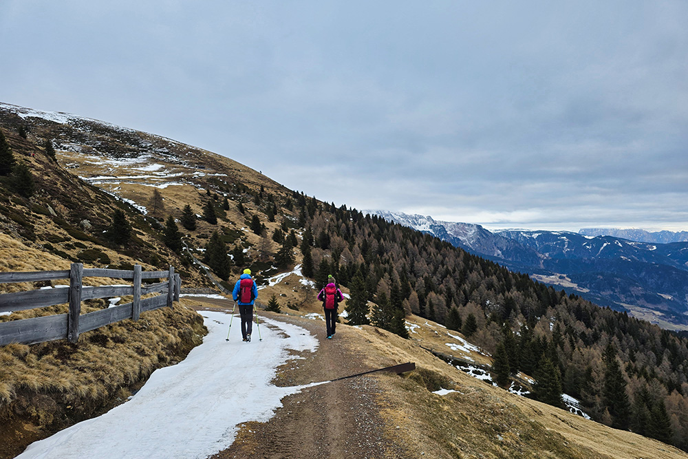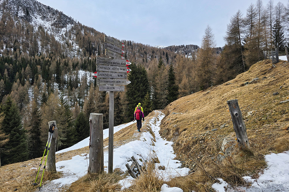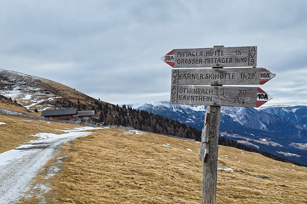 Questa escursione invernale conduce sull'Öttenbacher Berg, chiamato più comunemente Sam, una cima erbosa che domina il paese di Sarentino. Il percorso si distingue per la sua favorevole esposizione al sole, che garantisce condizioni piacevoli durante tutta la giornata, e per l'ambiente tranquillo e poco affollato, nonostante la vicinanza all'area sciistica di Merano 2000.