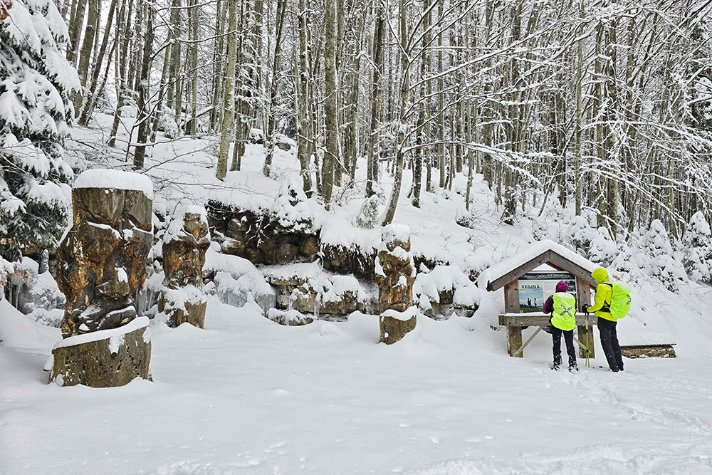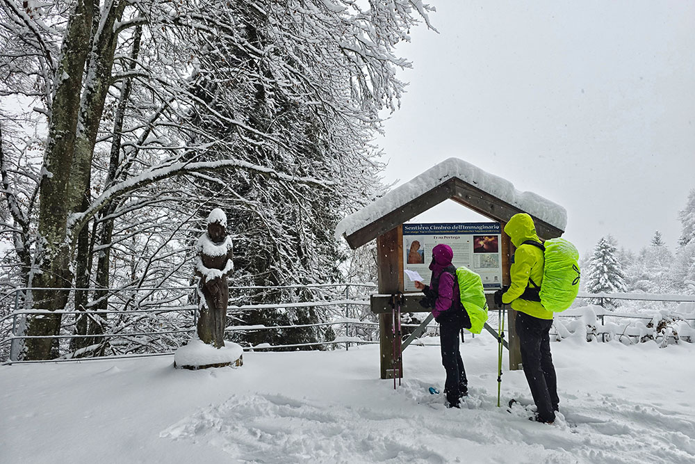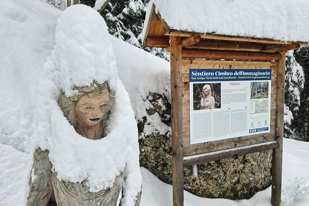 Il Sentiero Cimbro dell'Immaginario rappresenta una delle passeggiate più affascinanti dell'Alpe Cimbra. Questo percorso ad anello di circa 7 chilometri si snoda tra prati e boschi di abeti, offrendo scorci suggestivi sulla Val d'Astico e accompagnando l'escursionista alla scoperta dell'immaginario popolare cimbro attraverso sculture lignee e pannelli illustrativi.