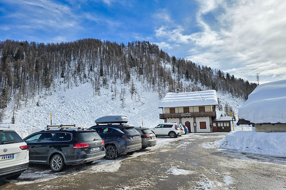 Le malghe lungo il tragitto - Malga Grugola e Malga Lozen - risultano chiuse nella stagione invernale; è quindi necessario portare con sé acqua e viveri. L’anello attorno al lago, all’inizio o al termine della ciaspolata, permette di apprezzare pienamente l’ampiezza del pianoro e la cornice dolomitica che lo circonda.