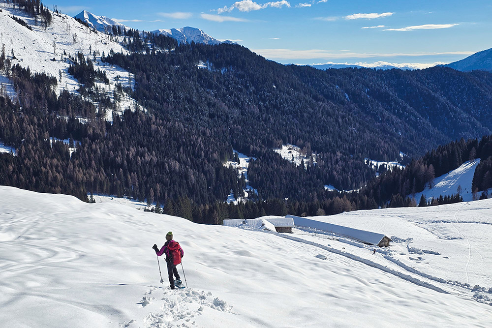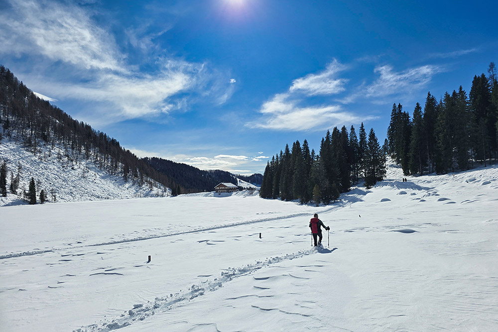 Valle del Lozen con le ciaspole: un anello facile tra lago, boschi e malghe nel Trentino orientale.