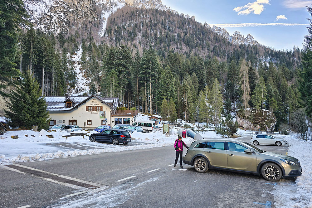 Da Fiera di Primiero si sale verso Passo Cereda. Quando mancano pochi chilometri al passo si devia a sinistra per la Val Canali e si continua fino alla località Cant del Gal.