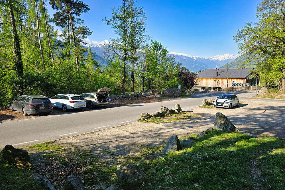 Da Merano prendere la SS38 Strada del Passo dello Stelvio fino a Tell. Qui salire su Via Strada Vecchia SP52 e poi svoltare a sinistra per Velloi e continuare fino al Ristorante Ladurner.