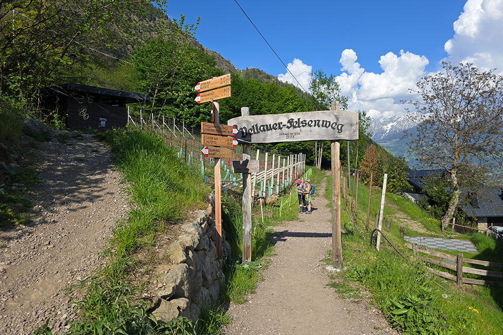 Da Velloi (914 m) si segue il segnavia 22 e si raggiunge la cappella della Santissima Trinità (965 m), dove ha inizio il Sentiero delle Rocce (Vellauer Felsenweg), che conduce rapidamente a Hochmut (1361 m). Alcuni tratti del sentiero sono attrezzati con catene. Da Hochmut si sale al Gasthaus Leiteralm (1432 m), dove si imbocca l'Hans-Frieden-Weg fino alla Leiteralm (1520 m). Si prosegue quindi sul sentiero 25, che riporta a Velloi concludendo l'anello.