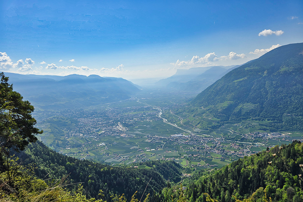 Per tutta la durata dell'anello si gode di una vista straordinaria sulla Valle dell'Adige e sulla Conca di Merano. I punti di ristoro sono ben distribuiti lungo il tragitto e offrono l'occasione per una sosta rigenerante.